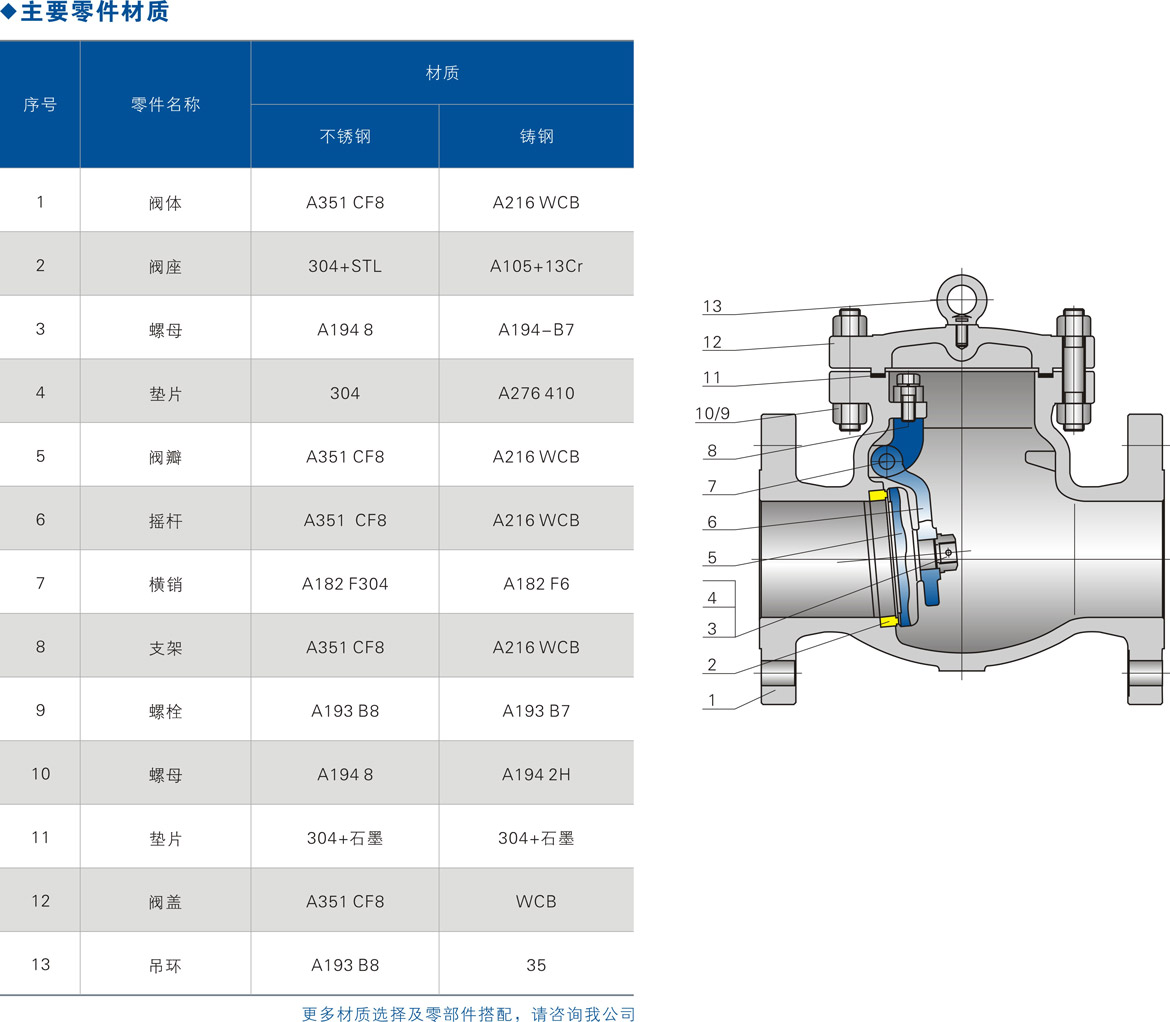 ①设计制造:铸钢止回阀按照BS1868、ASME B16.34、API 6D
