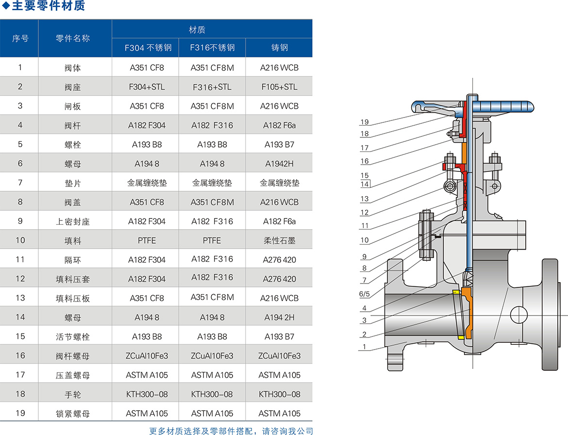 ⑥阀座可为更换式阀座,可任意组合与关闭件密封面材质配对,以满足工况要求,延长使用寿命。