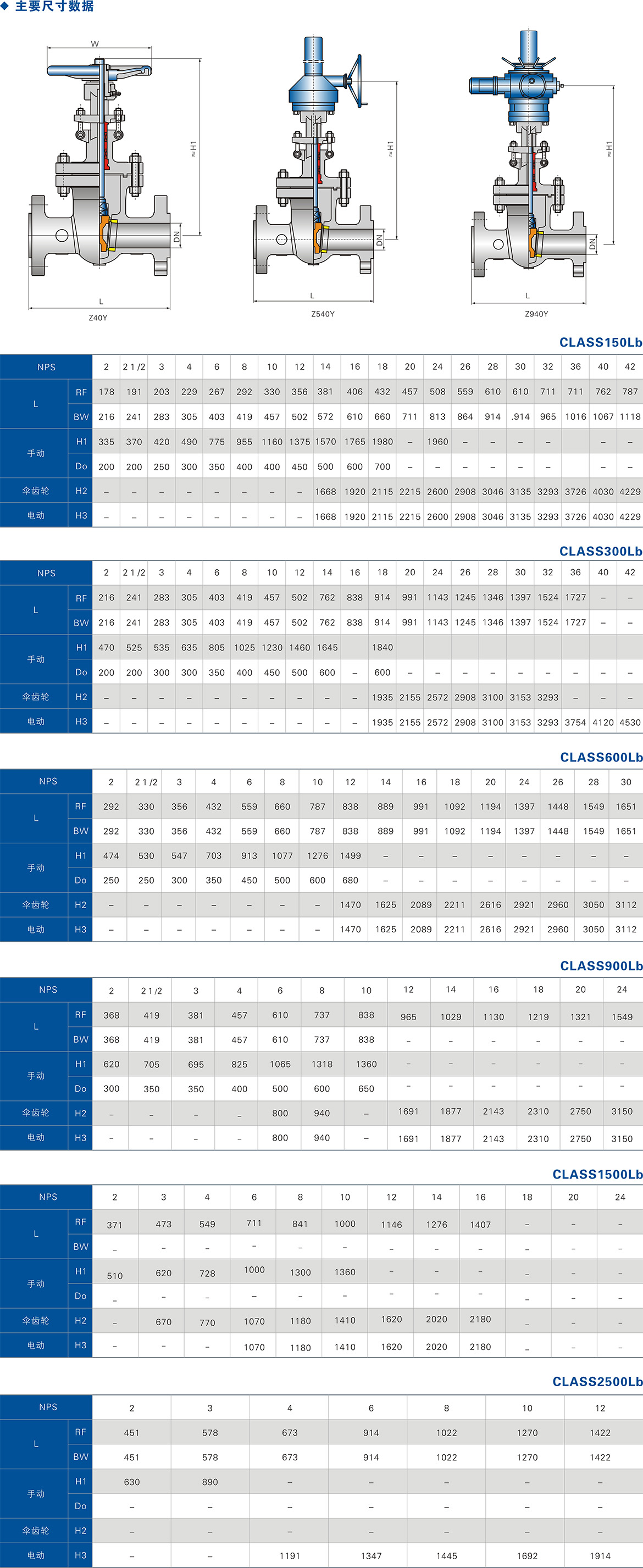 ①阀体和阀盖连接形式:Class150~ Class900采用栓接阀盖;Class1500~Class2500采用自压密封式阀盖。