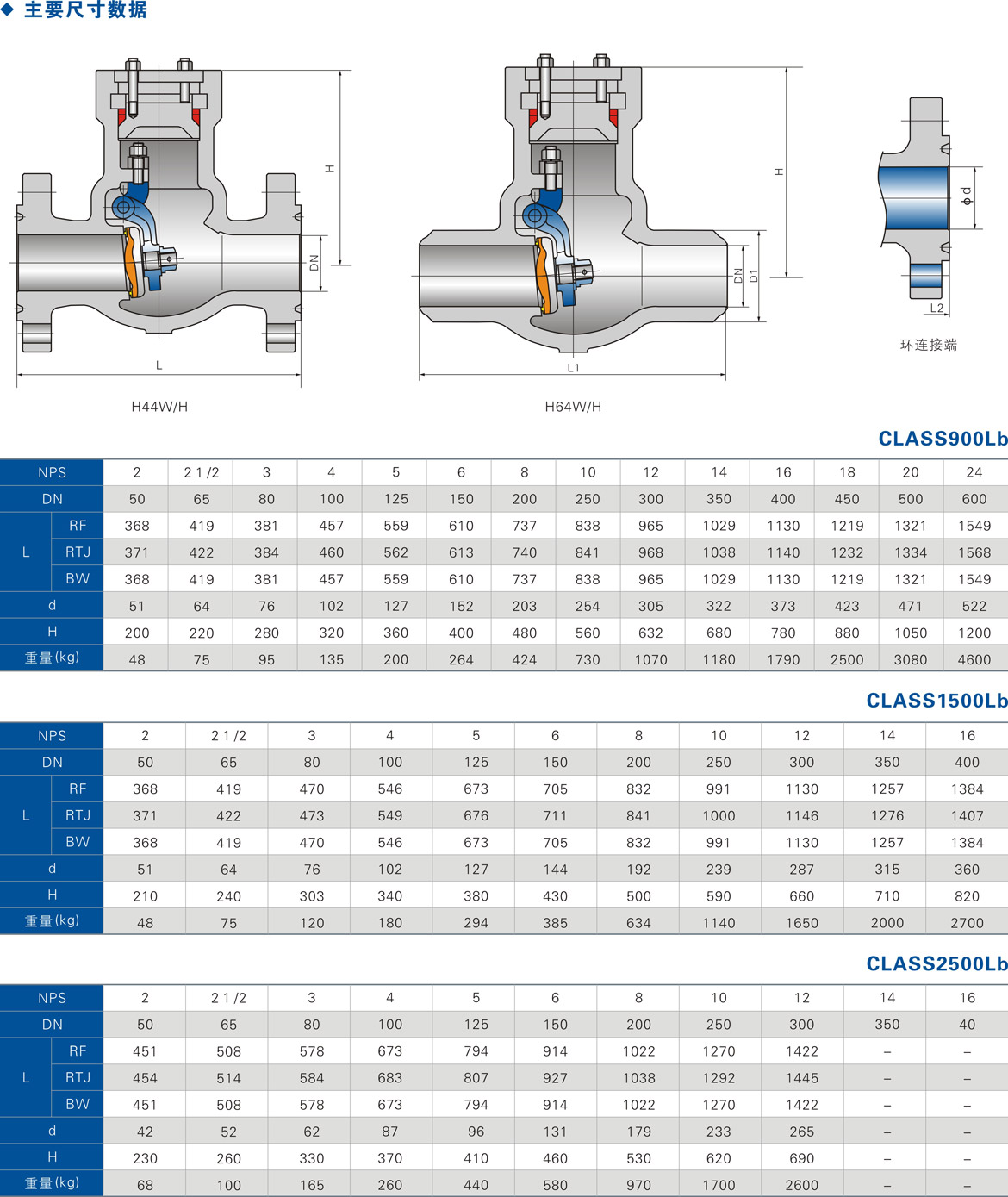 ①阀体和阀盖连接形式:自密封止回阀采用自压密封式阀盖。