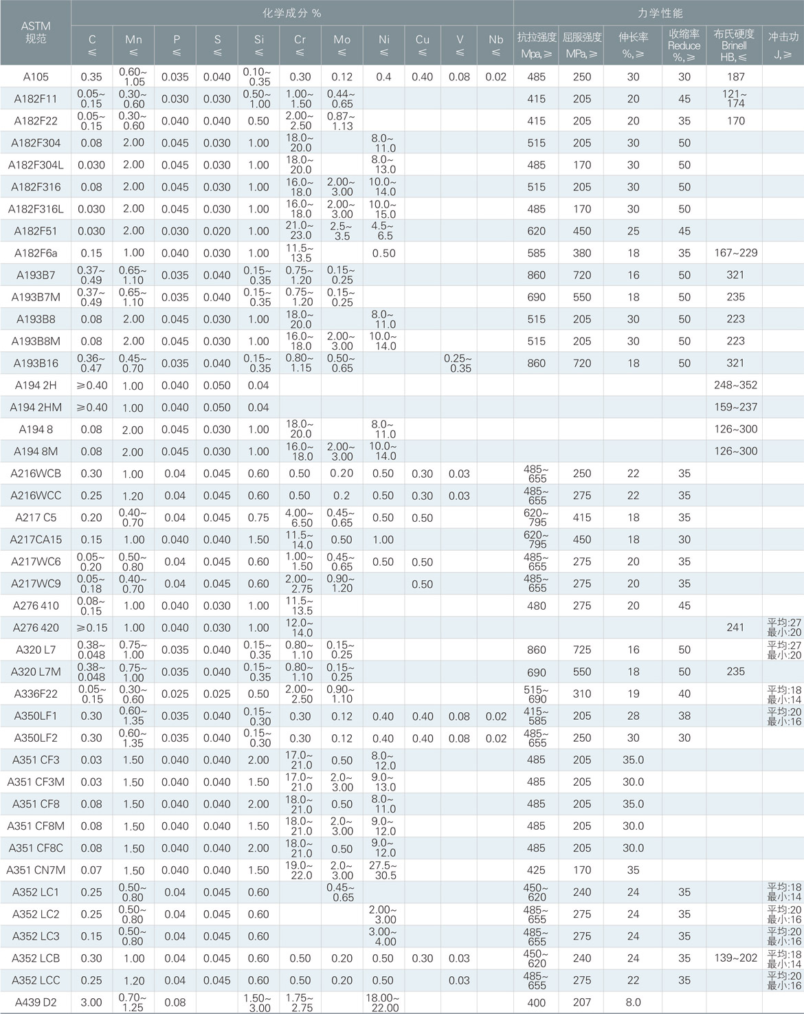 材料化学成分及力学性能表